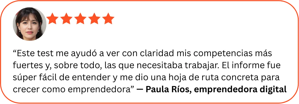 "Desde que realicé el test y comencé a trabajar en las áreas en las que necesitaba mejorar, he notado un crecimiento significativo en mi confianza y capacidad para enfrentar los desafíos empresariales. Ahora tengo una visión clara de mis fortalezas y debilidades, lo que me ha permitido tomar decisiones más informadas y estratégicas en mi negocio."