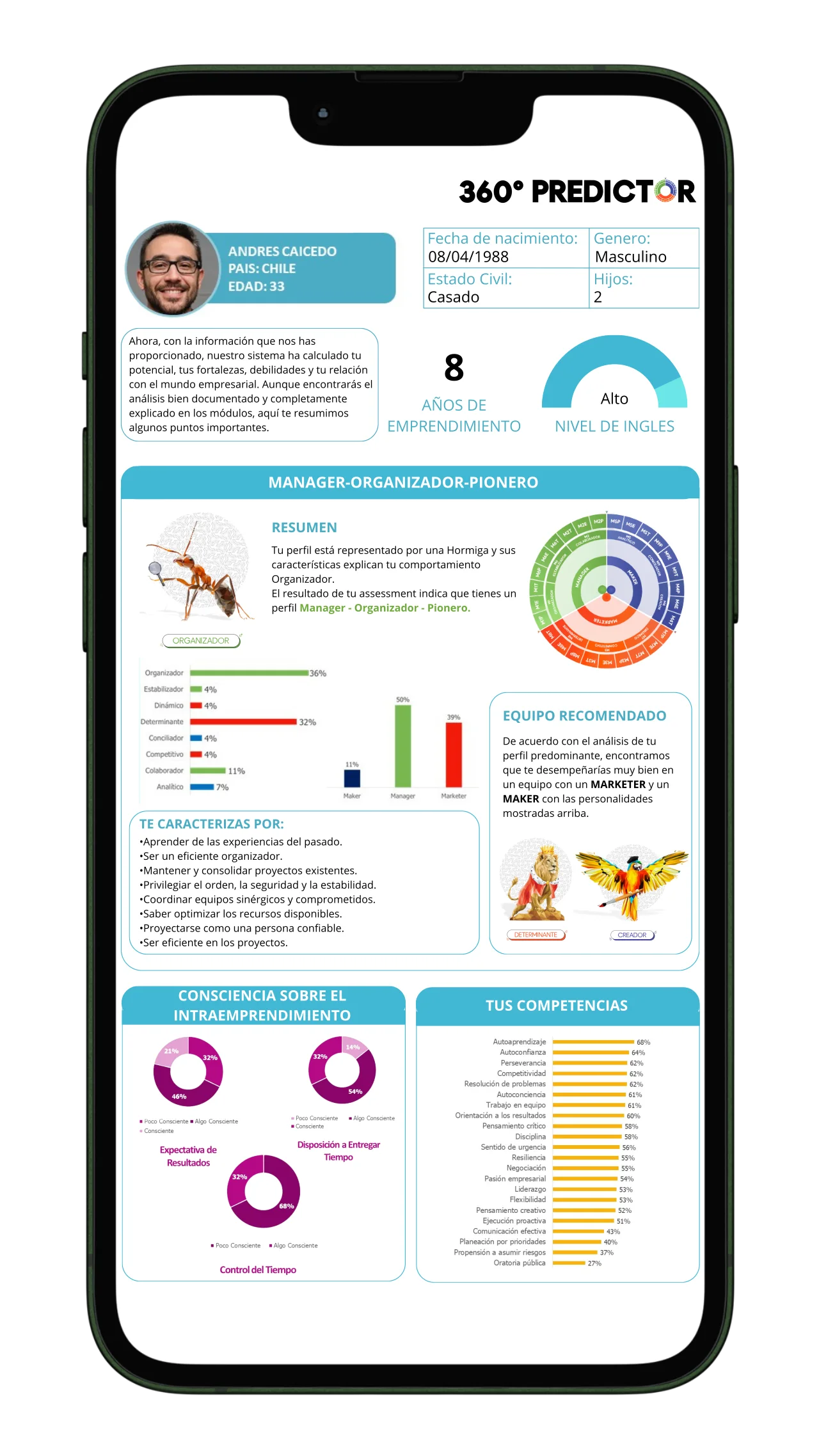 Con un informe visual, personalizado y basado en datos reales sobre tu personalidad, estilo y rol emprendedor